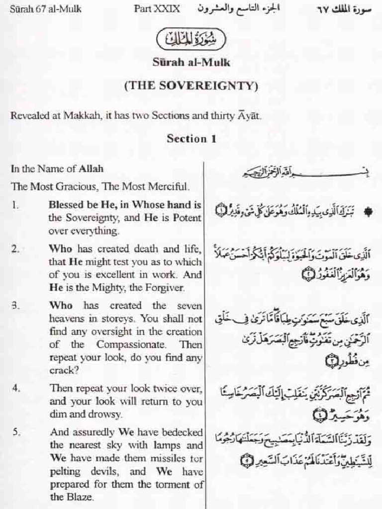 Surah Al Mulk Chapter 67 From Quran Arabic English Translation Iqrasense