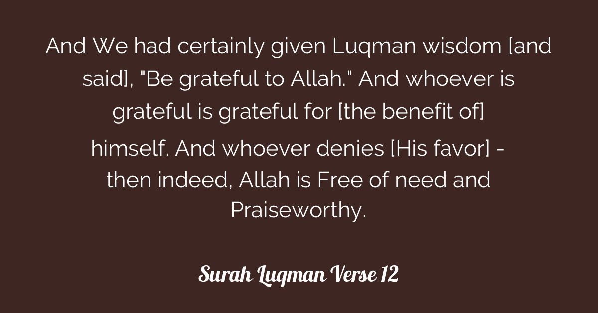 | Baca: Dan Sesungguhnya Telah Kami Berikan Hikmat Kepada Luqman Yaitu Bersyukurlah Kepada Allah Dan Barangsiapa Yang Bersyukur Kepada Alla Hikmat Bersyukur Allah |